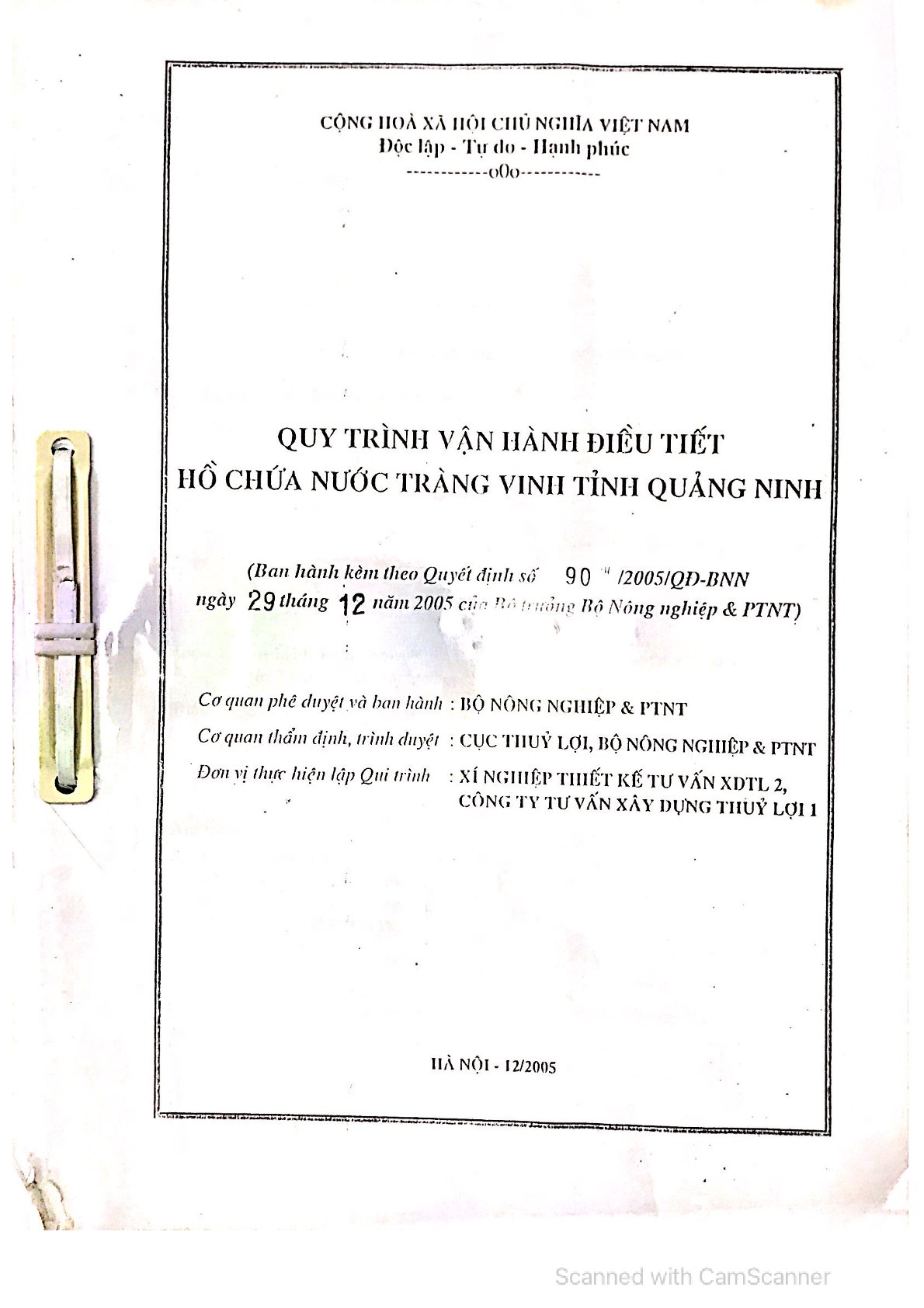 Quy trình vận hành hồ chứa nước Tràng Vinh ban hành theo Quyết định số 90/2005/QĐ-BNN ngày 29-12-2005