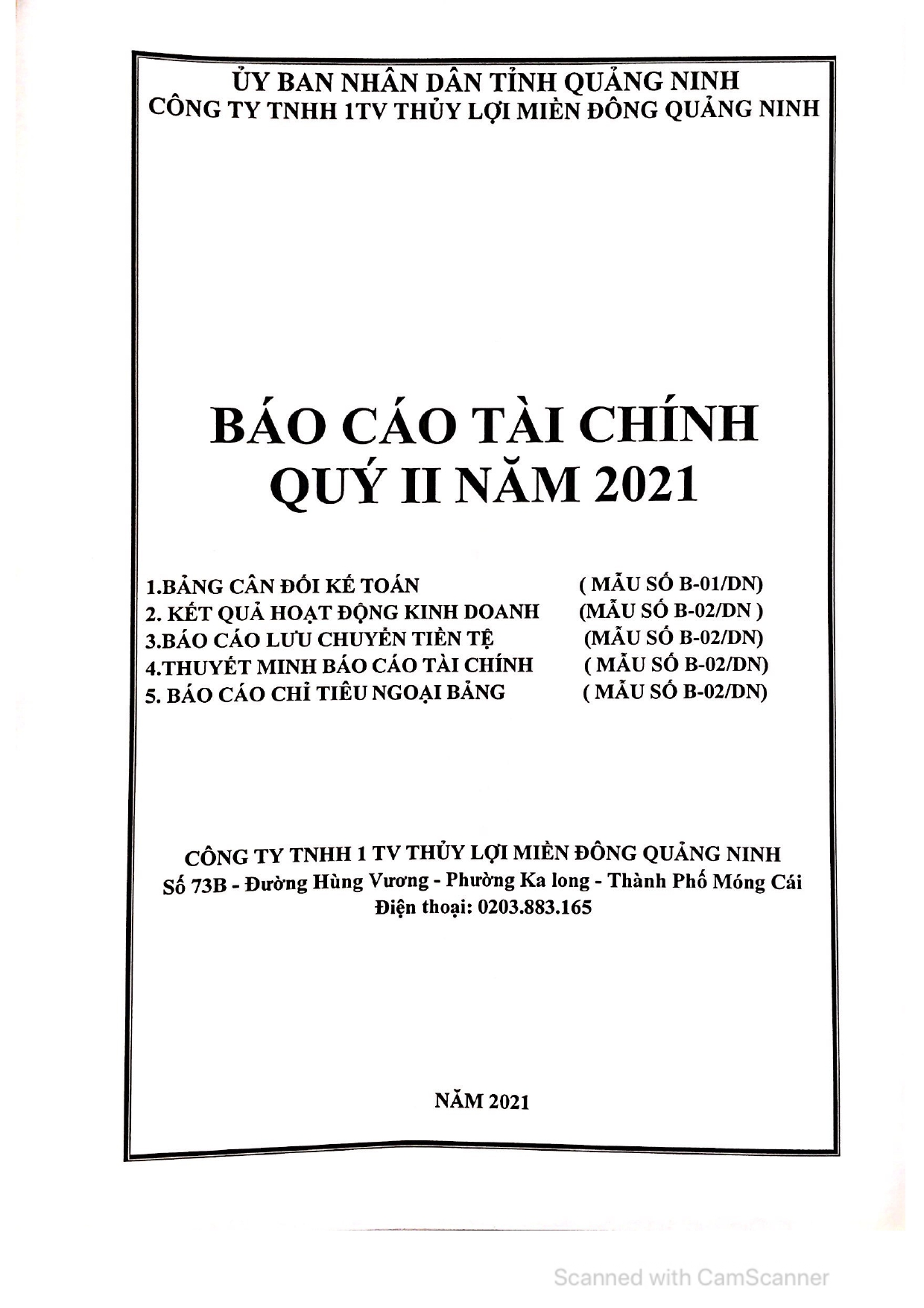 Báo cáo tài chính quý II năm 2021
